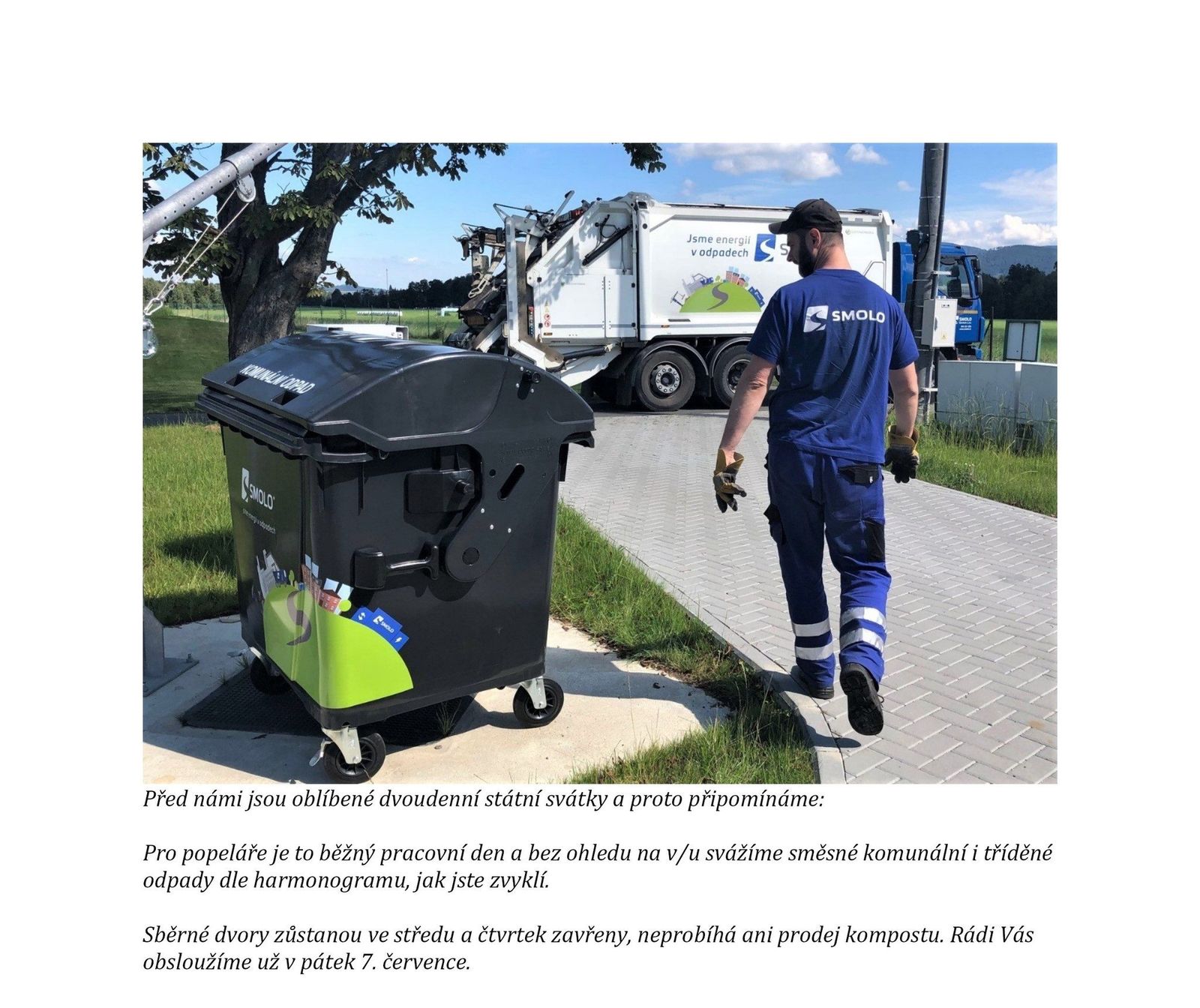 Úvod > Život v obci > Aktuality > Smolo - svoz a sběr odpadu během svátků 05.07. a 06.07.2023